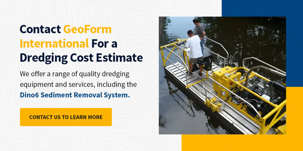 Are you reading to start your dredging project? Though working out the costs involves various details, it is possible to get a comprehensive cost estimate by consulting with industry experts. You can rely on our skilled team at GeoForm International Inc. to understand the specifics of your project and provide you with industry-leading dredging equipment for your needs.